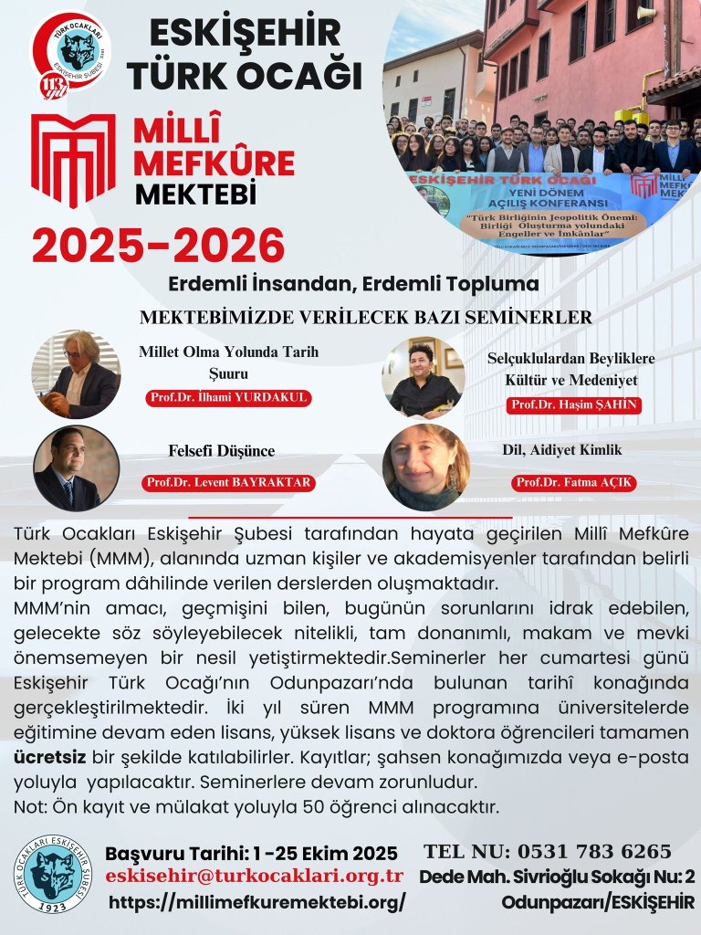 Türk Ocakları Eskişehir Şubesi bünyesinde Millî Mefkûre Mektebi adıyla oluşturulan Türk Ocağı Akademisi’nin resmî web sayfasıdır.